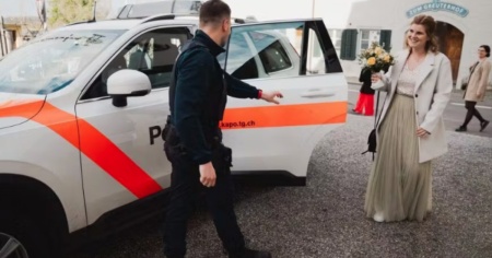 Sposi in panico, anche perché il luogo della cerimonia dove ad attenderli ci sono tutti gli invitati è distante da lì. Raphael e Lara, gli sposi che hanno raccontato la loro storia al sito 20 Minuten, non sanno cosa fare, come del resto l'autista, quand'ecco che come dal nulla fa la sua apparizione un'auto della Polizia cantonale che nota i tre "appiedati". Gli agenti, dopo avere preso nota della sfortunata circostanza, decidono a quel punto di fare salire a bordo della propria auto di servizio gli sposi per condurli nel luogo dove si dovrà tenere la cerimonia nuziale.
