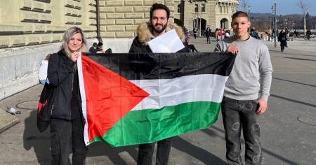 BERNA - La Gioventù Comunista (GC) ha consegnato oggi 29 febbraio a Berna al Consiglio federale la petizione intitolata “La Svizzera riconosca l’indipendenza della Palestina!”, che ha raccolto quasi 1200 firme. I firmatari chiedono al governo svizzero di «mantenere il proprio status neutrale non schierandosi con Israele, colpevole di innumerevoli crimini di guerra e, inoltre, riconoscendo ufficialmente la Palestina, come fatto già da più di 130 Paesi, così da poter concretamente mettere a disposizione i propri buoni uffici al fine ultimo di ottenere la pace», scrivono.