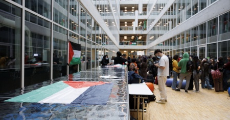 Questa azione «segue l'esempio delle mobilitazioni nei campus in Canada, Stati Uniti e Francia», spiegano gli organizzatori in un comunicato. Bandiere palestinesi sono state stese per terra, mentre altre sono state issate.