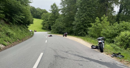 ERLINSBACH - Brutto incidente tra due moto lunedì di Pentecoste, 20 maggio, poco dopo le 19 sulla Salhofstrasse sopra Erlinsbach. Secondo i primi accertamenti il conducente 28enne di un'Aprilia stava viaggiando in discesa quando ha deciso di fare inversione su un'area ghiaiosa per tornare indietro.