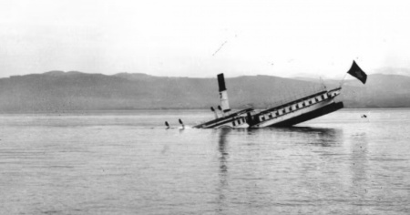 Il "DS Säntis" - piroscafo a ruote laterali - è stato affondato nel maggio 1933 poiché non più atto alla navigazione. Si trova al centro del Lago di Costanza fra Romanshorn e Langenargen (D). All'epoca una rottamazione era considerata troppo cara.