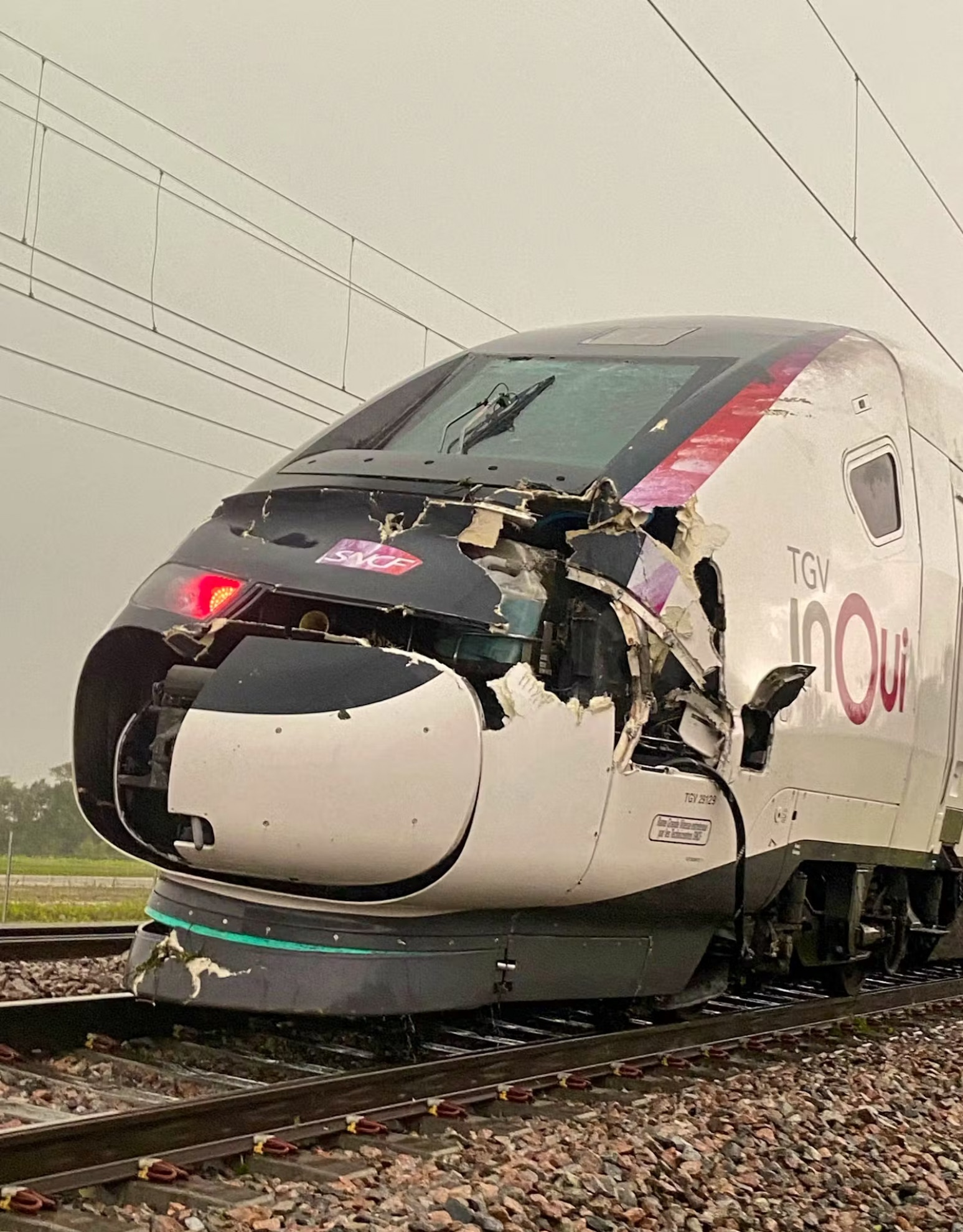 AFPUn treno ad alta velocità francese danneggiato dal maltempo a Saint-Florentin (Borgogna-Franca Contea).