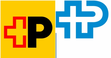 Ridotta all'osso la descrizione dei due loghi è la seguente: una croce a sinistra e una P maiuscola a destra. Tuttavia, ci sono differenze a livello di colore e di stile: il marchio della FSP è blu su sfondo bianco, mentre in quello della Posta la croce è rossa, la lettera P è nera e lo sfondo è giallo.