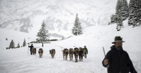 "Chiudono" gli alpeggi - A causa della neve, alcune vacche hanno dovuto lasciare gli alpeggi in anticipo sui tempi. Come ad esempio, sull'Alp Sardona a 1743 metri di altitudine nella Valle di Calfeisen a Vaettis. L'estate alpina si è conclusa prima del solito con le nevicate e gli alpigiani della valle sono tornati a casa prima del solito. Le foto dell'agenzia di stampa Keystone hanno immortalato il momento in cui i bovini attendono di essere ricondotte a casa, questo sabato, nella valle di Calfeisen a Vaettis. Le nevicate precoci, insomma, hanno chiuso la stagione sulle Alpi prima del previsto.