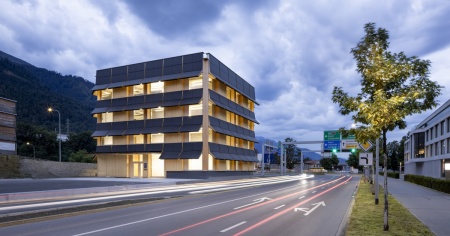 Sostenibile, funzionale e dall'architettura particolare - «Il nuovo centro della polizia stradale si contraddistingue non solo per la sua funzionalità per l'utenza, bensì anche per la sua costruzione sostenibile e per il suo particolare design architettonico. Si tratta di una manifestazione dell'impegno del Cantone a favore della sostenibilità» ha affermato la consigliera di Stato Carmelia Maissen, direttrice del Dipartimento infrastrutture, energia e mobilità. L'edificio a forma di torre si distingue soprattutto per le fasce scure e leggermente sporgenti che lo cingono, costituite da singoli moduli fotovoltaici, le quali al contempo ombreggiano le grandi finestre.