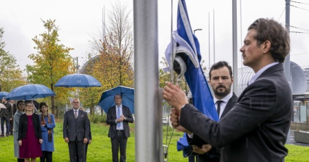 GINEVRA - La bandiera estone è stata issata oggi durante una cerimonia tenutasi al CERN, per celebrare l'adesione quale 24° Stato membro del CERN. Alla cerimonia hanno partecipato il presidente della Repubblica di Estonia, Alar Karis, uno dei due vice-presidenti del Consiglio del CERN, Eric Laenen, e la direttrice generale del CERN, Fabiola Gianotti, insieme ai rappresentanti degli Stati membri e degli Stati membri associati del CERN, degli Osservatori e alla comunità del CERN.