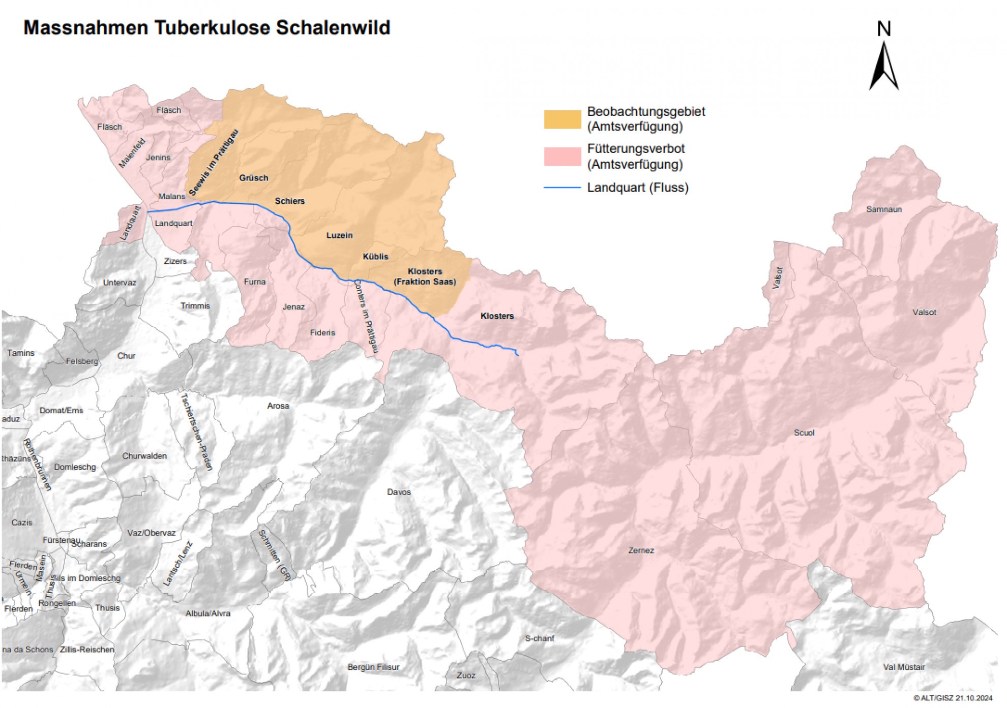 L'attuazione, che è logisticamente impegnativa, è sostenuta dall'Associazione dei cacciatori grigioni con licenza (ACGL) e dall'Ufficio per la caccia e la pesca (UCP). Soltanto a giugno di quest'anno è stato prorogato, a tempo indeterminato, il divieto di foraggiamento di ungulati (cervi, caprioli, camosci, stambecchi) da parte di privati nella zona di confine con il Vorarlberg e il Tirolo, in vigore dal 2016. Questo perché la tubercolosi era già presente nella popolazione di cervi in alcune zone dell'Austria.