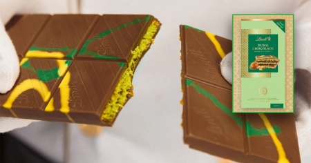 Il cioccolato di Dubai, caratterizzato da una farcitura di pistacchio, si basa su una creazione sviluppata per la prima volta nel 2021 dall'artista specializzata Sarah Hamouda. Il prodotto è diventato virale in particolare grazie alla promozione da parte di influencer.
