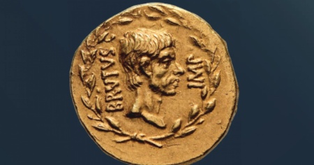 La moneta fu coniata tra il 43 e il 42 a.C. da Bruto e dai suoi sostenitori, gli stessi che uccisero Giulio Cesare nel marzo del 44 a.C., ha aggiunto Baldacci. Sul fronte della moneta è raffigurato il profilo di Bruto, circondato da una corona d'alloro, mentre sul retro sono presenti simboli di guerra per celebrare le sue vittorie militari.