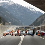Incollati sul cemento davanti al San Gottardo: agli attivisti migliaia di franchi di multa