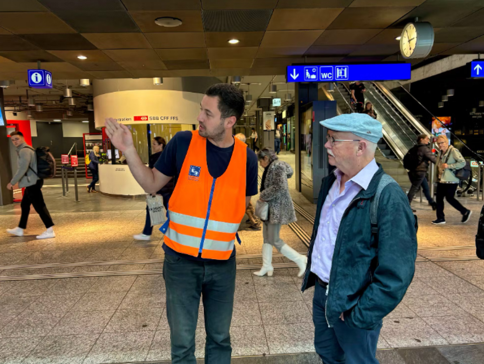 «Potremmo fare ancora di più» - Mariano è impiegato presso la Fondazione Pro Fillia, che gestisce i centri di assistenza delle stazioni di Berna e di Bienne. Toni Hodel, 72 anni, è il responsabile delle operazioni. Secondo lui, «potremmo fare ancora di più». Molte persone non conoscono il servizio di assistenza in stazione e ci sarebbe bisogno di maggiore visibilità per poter prendere in carico più richieste. Per questo motivo, gli assistenti si muovono attivamente in stazione per offrire il loro aiuto.