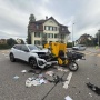 La donna è rimasta leggermente ferita ed è stata trasportata in ambulanza in ospedale, mentre la conducente dell’auto è rimasta illesa. Entrambi i veicoli hanno riportato ingenti danni materiali.