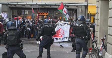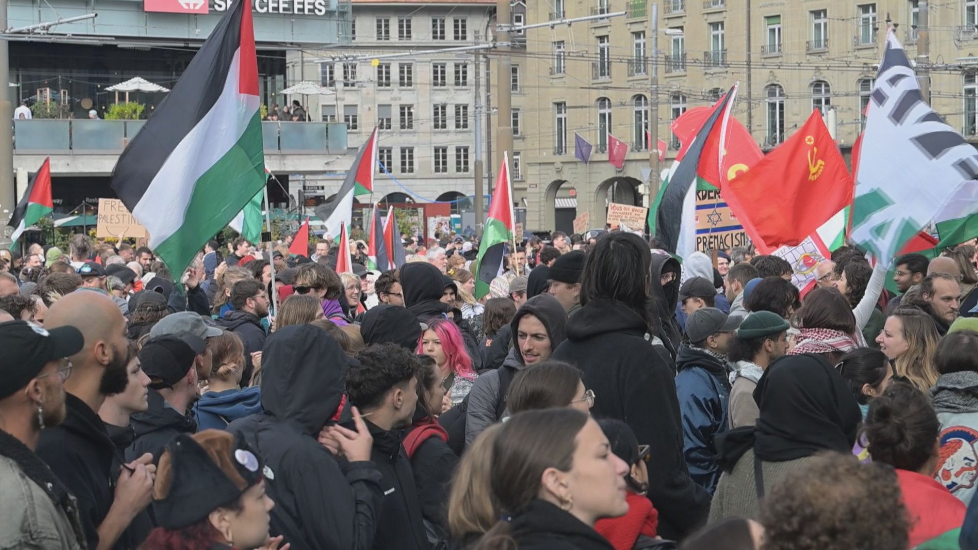 Circa 5000 persone si sono riunite oggi a Berna in sostegno alla Palestina, con tafferugli, disordini e grande dispiegamento di agenti