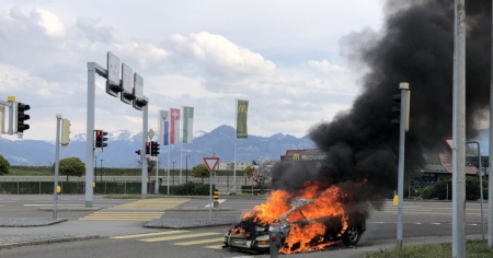 L'automobile ha preso fuoco ieri nei pressi di un semaforo a St. Margrethen.