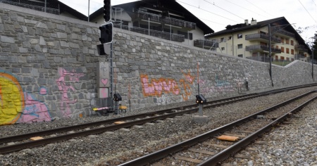 Ieri pomeriggio, la polizia cantonale dei Grigioni ha ricevuto il rapporto completo dalla stazione di Klosters Platz, da cui risulta che le scritte si estendono su muri e infrastrutture ferroviarie per una lunghezza superiore ai 200 metri.