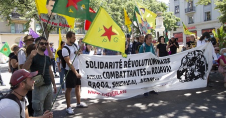 GINEVRA - Una cinquantina di persone hanno dimostrato questo pomeriggio a Ginevra a sostegno del popolo curdo. L'evento, organizzato dal Rojava Comité Genève e da SolidaritéS, ha risposto all'appello internazionale lanciato da diversi collettivi.