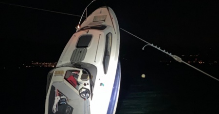 Motoscafo in verticale: è rimasto impigliato in un cavo