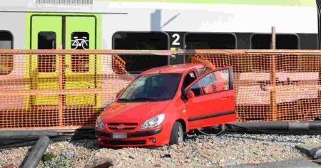 Sbaglia pedale: investe un ciclista e finisce contro un treno