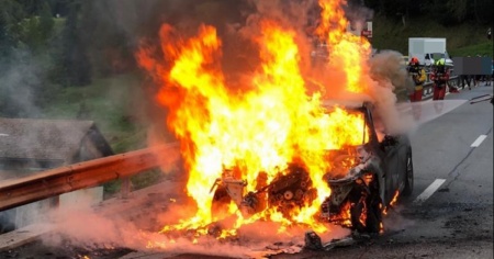 Rapidamente intervenuti, i vigili del fuoco di Surses hanno ben presto spento l'incendio, ma nel frattempo l'intero veicolo era stato divorato dal fuoco.