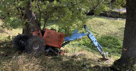Per ragioni che gli inquirenti dovranno determinare, un escavatore si è rovesciato all'altezza di una collina, ribaltandosi più volte e terminando la propria corsa, dopo 25 metri, contro un albero.