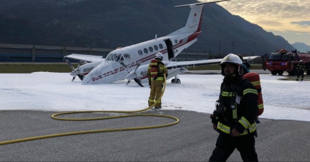 Dopo più di quattro ore in cielo, l'atterraggio è avvenuto alle 14.34 all'aeroporto di Sion sotto gli occhi di una quindicina di vigili del fuoco dello scalo, dei sanitari di due ambulanze e del Servizio mobile di emergenza e rianimazione (SMUR). «L'atterraggio è stato impressionante ma controllato», ha affermato la polizia. I due occupanti sono illesi. Erano presenti anche ispettori del Servizio d'inchiesta svizzero sulla sicurezza (SISI).