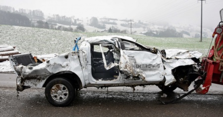 Secondo una nota della polizia cantonale di Obvaldo, l'incidente è avvenuto verso le 23.00 di ieri. Il Pick-up ha sbandato a causa della superficie innevata, uscendo di strada, ribaltandosi più volte, e finendo la propria corsa incastrato tra due alberi.