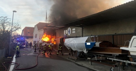 FRIBURGO - Ieri pomeriggio, poco prima delle 17.30, i pompieri di Morat, di Vully e di Friburgo, oltre alla polizia cantonale, sono stati allertati per un incendio in a cantiere navale a Praz (FR).