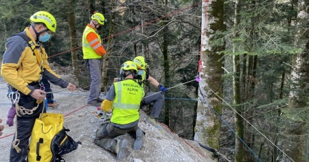 Sul posto, attorno alle 17.30, sono giunti membri della colonna di soccorso locale che si sono calati con delle corde per salvare i tre malcapitati. Per questi ultimi, visitati dai paramedici, «è stato più lo spavento che il danno», ha precisato la polizia.