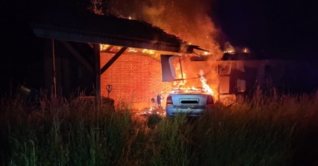 L'intervento dei pompieri, subito accorsi in massa sul posto, ha impedito che il rogo si propagasse all'abitazione del proprietario, ma non ha potuto salvare l'automobile e gran parte del fienile.