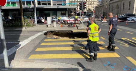 GINEVRA - Una voragine si è aperta ieri sotto un passaggio pedonale nel centro di Ginevra, in un incidente che avrebbe potuto facilmente avere conseguenze più gravi.