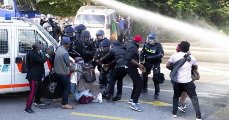 Ieri si è tenuta una manifestazione non autorizzata con oltre un centinaio di partecipanti, durante la quale i dimostranti hanno cercato a più riprese di forzare il cordone di polizia presente davanti all'albergo. Le forze dell'ordine hanno risposto con l'utilizzo di cannoni ad acqua e gas lacrimogeni.