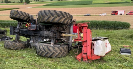 Sempre durante un lavoro di falciatura è rimasto gravemente ferito un agricoltore di 47 anni in località Grüssi, nel villaggio di Kalthäusern, sul comune di Lommis (TG). Per ragioni ancora ignote, intorno alle 20.15, il veicolo si è rovesciato di lato su un terreno in pendenza e ha intrappolato il conducente. Per liberarlo sono dovuti intervenire i vigili del fuoco, precisa la Polizia cantonale.
