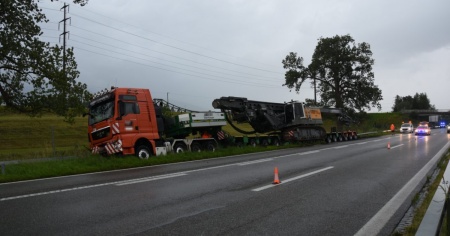 WIDNAU - Un mezzo pesante con un carico di novanta tonnellate è finito fuori strada lungo l'autostrada A13, all'altezza della località sangallese di Widnau. Complessivamente, il trasporto speciale pesava 150 tonnellate.