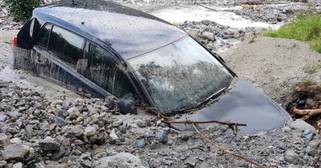 Colata di detriti sulla principale, auto spazzata via
