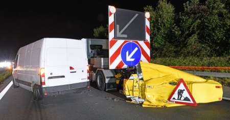 Erano per la precisione le 20.30, quando un furgoncino si è schiantato violentemente contro un veicolo di segnalazione che indicava la riduzione da due a una corsia per un cantiere. Nello schianto nessuno è rimasto ferito. Il camioncino ha però subito danni tali, che non è più stato possibile rimetterlo in moto e ha dovuto essere rimosso dalla carrozzeria di servizio.