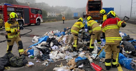 L'incendio si è verificato a bordo di un camion della spazzatura a Zugo