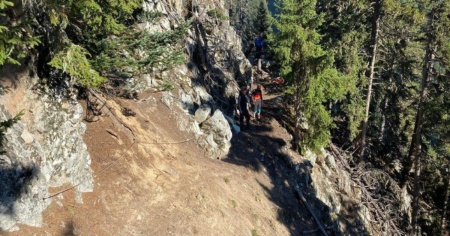 Un gruppo di sette ciclisti stava scendendo da "Les Ruinettes" a Lourtier quando uno di loro ha urtato una roccia ed è stato proi...