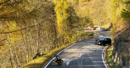 In località Ulrichen (VS), durante una curva una vettura ha sconfinato sull'altra corsia finendo per travolgere un mot...
