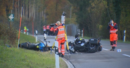 Poco prima delle 13 un gruppo composto da sei motociclette stava circolando da Rifferswil in direzione di Affoltern am Albis, mentre un motociclista di 57 anni, con un passeggero, stava viaggiando in direzione opposta. Per motivi ancora da chiarire quest’ultimo si è spostato in mezzo alla carreggiata mentre percorreva una lunga curva a destra. Il 57enne e il suo passeggero si sono scontrati frontalmente con la quinta moto del gruppo in arrivo, alla guida della quale c’era un uomo di 23 anni accompagnato da una passeggera. Entrambi i conducenti sono rimasti gravemente feriti nell'incidente, mentre la passeggera, una diciassettenne, ha riportato ferite leggere.
