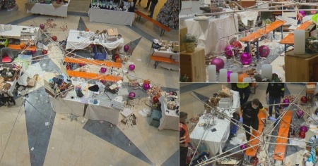 Decorazioni di Natale si staccano dal soffitto e colpiscono i clienti