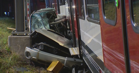 La sua automobile è stata travolta da un convoglio mentre si trovava ferma su binari.