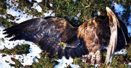 Un'aquila reale finisce contro le pale di una turbina eolica e muore