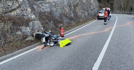 Il centauro è stato elitrasportato all'ospedale, precisa la nota aggiungendo che la strada è stata temporaneamente chiusa. Le ragioni del sinistro non sono ancora note: è stato lanciato un appello a testimoni.