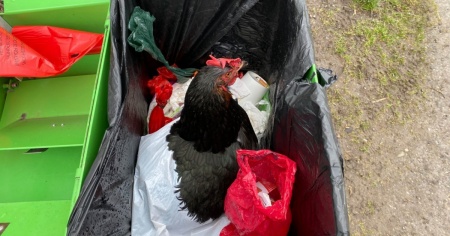 ZUGO - Un pollo è stato ritrovato questa mattina in un cestino per raccogliere gli escrementi dei cani situato nei pressi del poligono di tiro di Zugo.