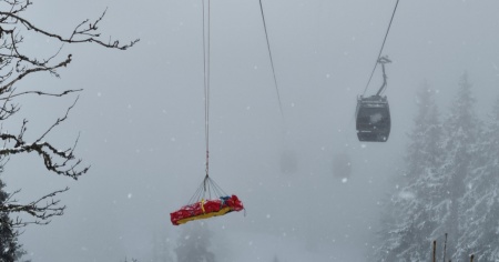 COIRA - Spettacolare salvataggio sabato sul comprensorio sciistico di Laax (GR): una giovane che si era ferita è stata evacuata per via aerea, non da un elicottero della Rega, che non poteva volta a causa della nebbia, ma ricorrendo a una cabina degli impianti di risalita.