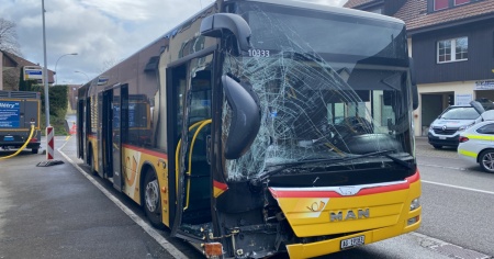 Il bus stava circolando in direzione Unterdorf Oberdorfstraße attorno alle 9.50 di sabato quando, svoltando a sinistra, per motivi che l'inchiesta di polizia dovrà stabilire è andato a collidere con il muro di cinta di un'abitazione. L'autista è stato condotto in ospedale per accertamenti, mentre due dei cinque passeggeri che si trovavano a bordo del mezzo al momento dell'impatto hanno riportato ferite leggere.