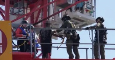 Dopo 12 ore, l’individuo sulla gru è stato raggiunto dalla polizia