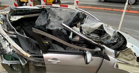 Con un mezzo agricolo, strappa il tetto di una macchina