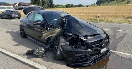 Il 23enne al posto di guida di una Mercedes-Benz AMG C63 ha sbandato e la vettura ha fatto un testacoda e si è schiantata violentemente contro il basamento di un impianto di segnalazione. Sia il conducente che il passeggero di 27 anni sono rimasti leggermente feriti e sono stati portati in ambulanza per controlli.