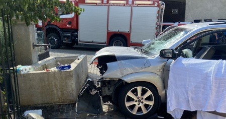 WAHLEN BEI LAUFEN - Un botto violento e l'auto che rimbalza dopo avere centrato in pieno la fontana del paese. La quiete di un caldo pomeriggio d'estate nel piccolo villaggio di Wahlen bei Laufen, nel canton Basilea Campagna, è stata interrotta ieri pomeriggio da un fragore sinistro di lamiera: era quella di un'automobile guidata da un 51enne originario di Laufen che aveva appena centrato l'unica fontana presente all'ingresso del villaggio.